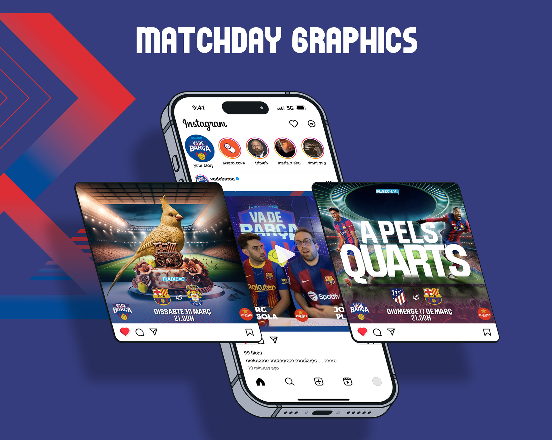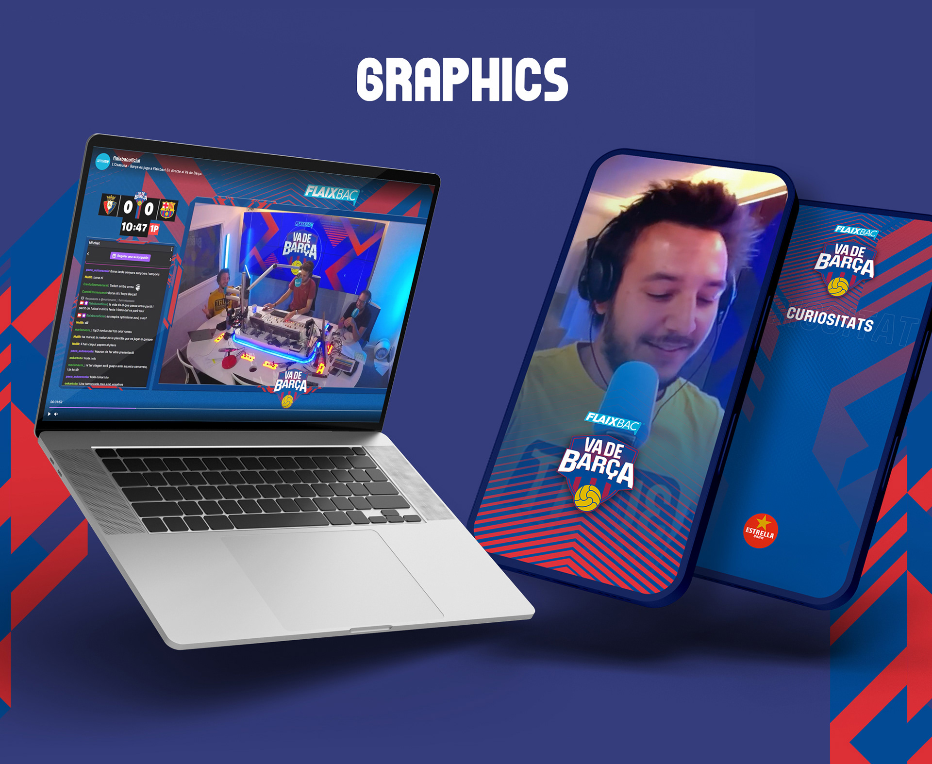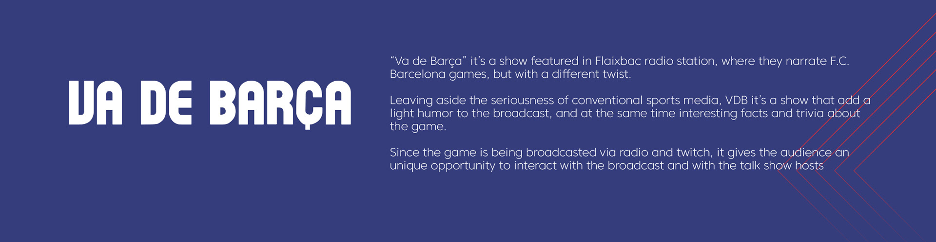 Redesign of the logo for the Va de Barça Show, featured in Radio Flaixbac and Twitch, along with the redesign of their matchday graphics